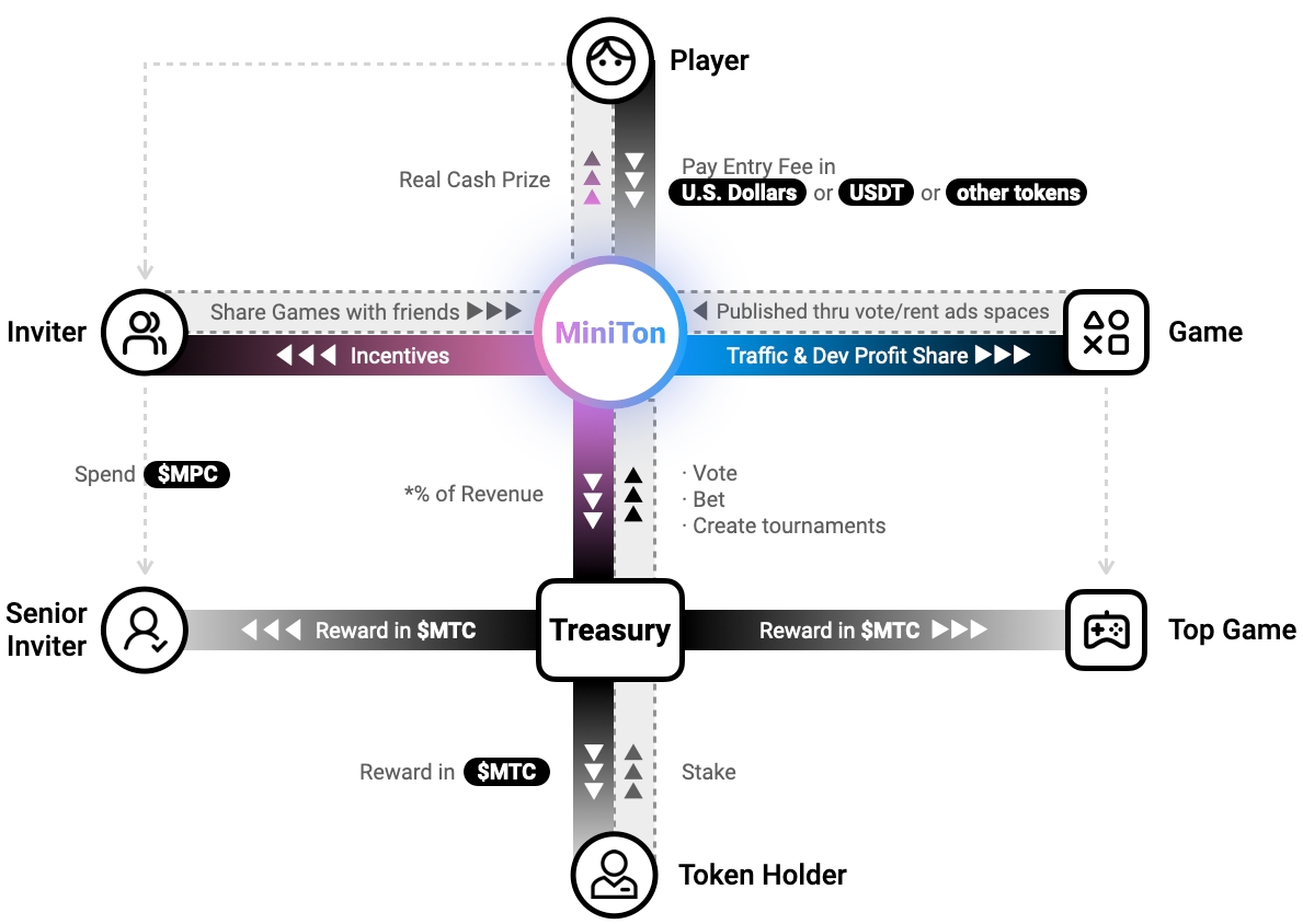 플레이어 티켓은 명목화폐, 스테이블코인, 게임 토큰으로 지불할 수 있습니다. MiniTon의 수익은 명목화폐, 스테이블 코인 또는 게임 토큰으로 이루어질 수 있습니다. 수익 통화의 다양성은 MiniTon의 재무 건전성을 강화할 것입니다.